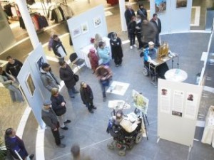 An den Ausstellungstagen malten die beiden Mundmaler Lars Höllerer und Thomas Kahlau “live”, was für viele Besucher des Einkaufszentrums ein ganz neues Erlebnis war. Hier ein Video von der Eröffnung der Ausstellung: