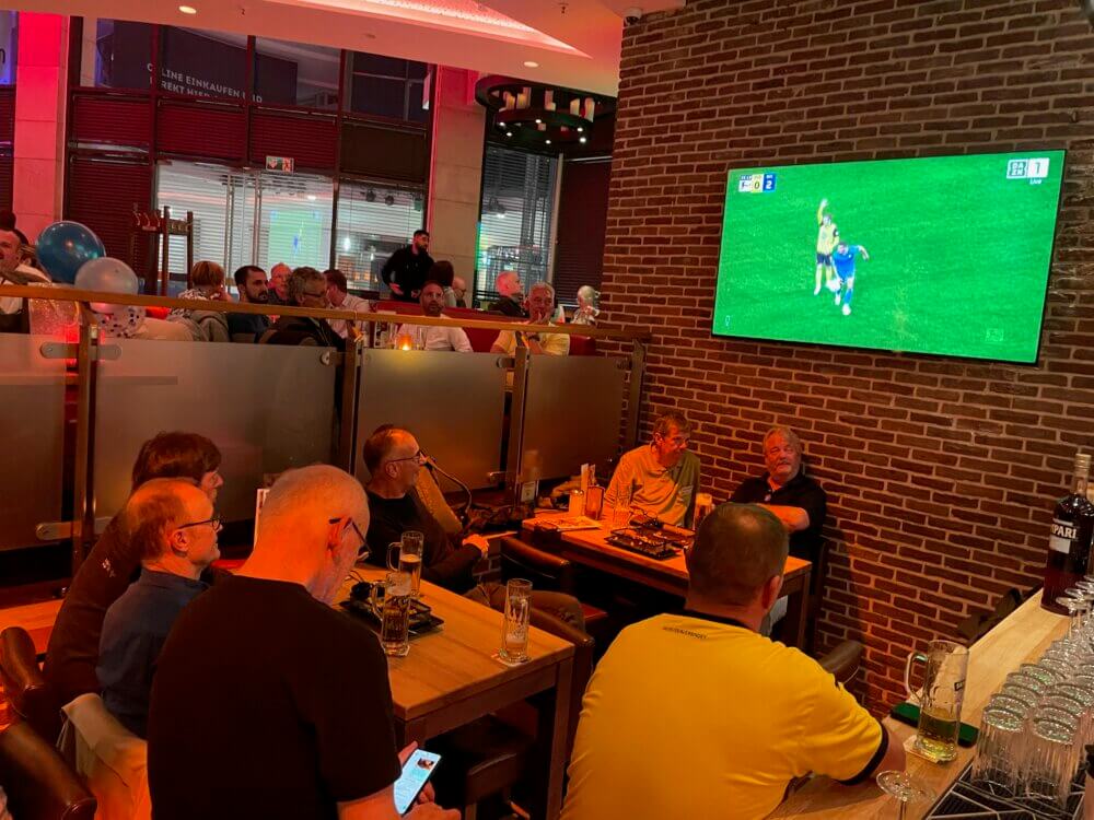 Wer den Bahnhof in Dortmund verlässt, sieht als erstes einen BVB-Fanshop. Im ganzen Stadtgebiet hängen schwarz-gelb Fähnchen. Gefühlt trägt auf der Straße jeder Dritte irgendein BVB-Accessoire: Shirt, Mütze, Jacke, Schuhe, Armband, Tasche. Als wir in Dortmund sind, findet im Westfalen-Stadion (heute: Signal-Iduna-Park) das Heimspiel gegen den VfL Bochum statt. Da es natürlich keine Tickets mehr gibt, gehen wir in eine Kneipe, die auf mindestens zehn Screens und Leinwänden das Spiel live zeigt. Zu unserer 6er-Gruppe gesellt sich ein BVB-Fan, der immer noch sauer ist, weil sein Verein vor einer Woche in Stuttgart mit 5:1 abgewatscht wurde. Auch diesmal sieht es nicht so gut aus: Bochum führt 0:2. Das Spielt dreht sich, und wir beenden den Abend mit einem 4:2-Sieg für den BVB.