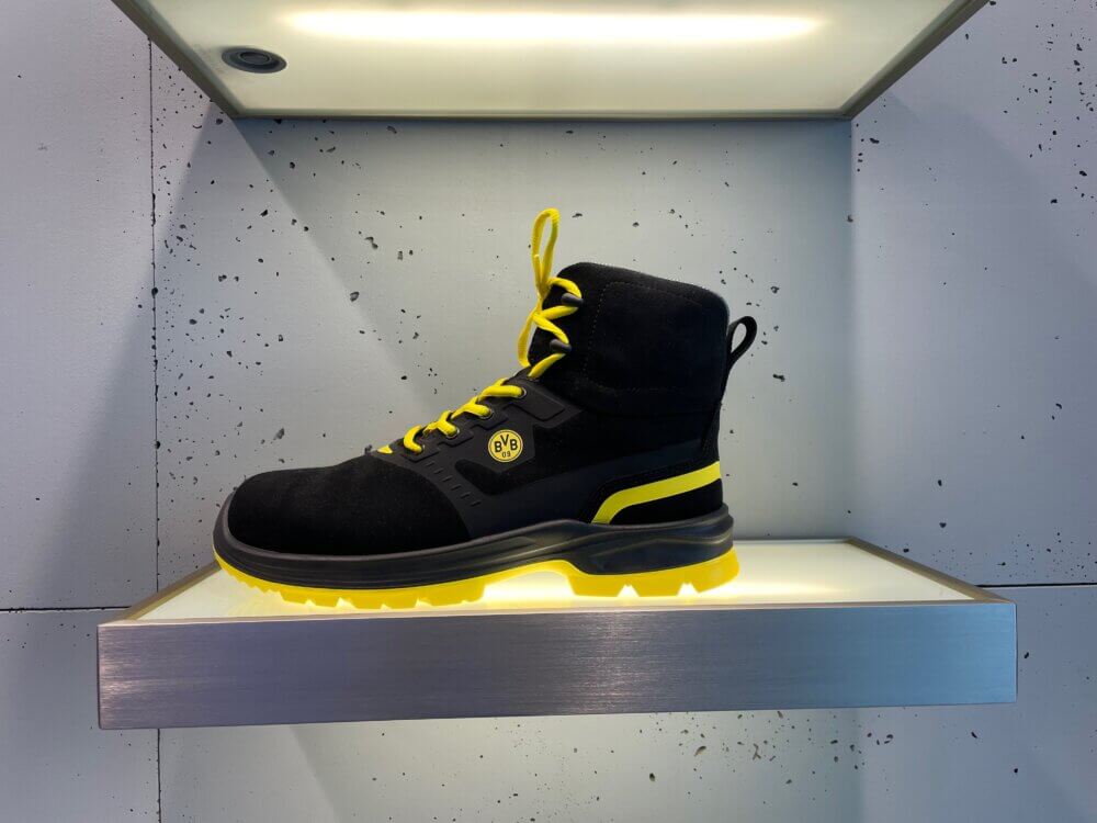 Firmenbesuch bei Atlas-Schuhe. Diese Marke dürfte für die meisten, die im Büro tätig sind, eher unbekannt sein. Anders bei all denen, die in der Fabrik oder auf dem Bau oder an anderen Orten arbeiten, wo Gefahren lauern, wo Schutzkappen den Fuß vor schweren oder spitzen Gegenständen schützen. Knapp drei Millionen Paar dieser Sicherheitsschuhe endmontiert Atlas im Werk in Dortmund jedes Jahr. Die Schafte dazu kommen aus dem eigenen Werk im Süden Brasiliens. Auf gigantisch großen Grasebenen weiden dort Rinder der Rasse Black Angus, deren Häute von besonders hoher Qualität sind und daher besten Tragekomfort bieten. Auch wenn verstärkt Kunststoffe in der Schuhfertigung eingesetzt werden, bestehen die meisten Sicherheitsschuhe noch immer aus Leder. Am Produktionsstandort in Dortmund werden an die Schafte rund um die Uhr die Laufsohlen angebracht: mit 3D-Druck, modernsten Robotern und der derzeit weltweit größten PU-Spritzanlage. Das ist alles sehr beeindruckend zu sehen; am besten gefällt mir der Sicherheitsschuh „Mallocher 09“ in Schwarz-Geld mit BVB-Logo.
