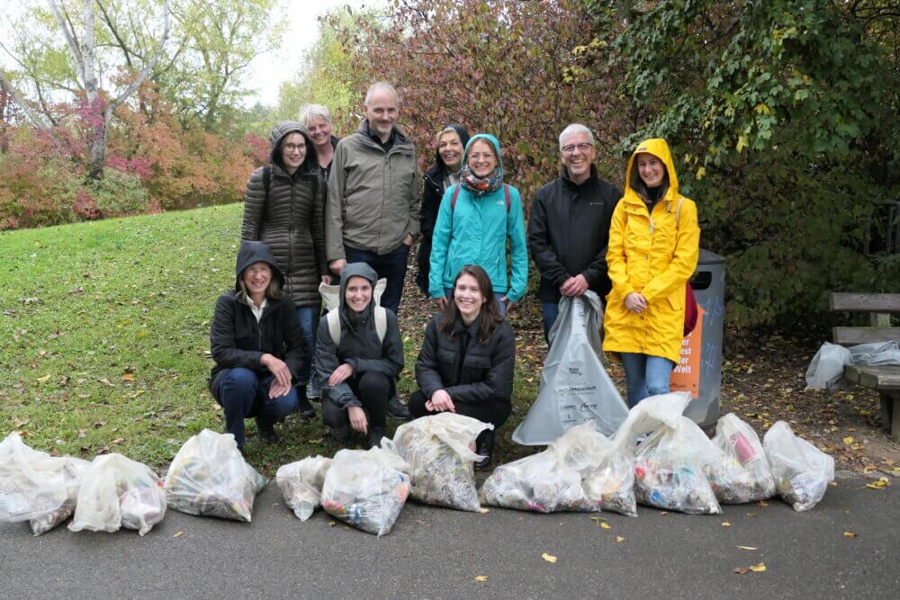 Ja, wie Helden oder Heldinnen sahen wir wahrscheinlich nicht aus, als wir mit Handschuhen und Greifzangen ausgestattet, Zigarettenstummel und allerlei anderen Abfall in Müllsäcke beförderten – und doch war die CleanUp-Aktion Teil unserer Heldenreise auf dem Weg zum großen Ziel „Nachhaltigkeit“. Denn durch die Unterzeichnung der WIN-Charta des Landes Baden-Württemberg hat sich Sympra zu ökonomischer, ökologischer und sozialer Verantwortung bekannt. Neben kontinuierlichen Maßnahmen, die zum Beispiel den eigenen Energie- und Verpackungsverbrauch reduzieren oder zahlreiche Pro-bono-Projekte mit regionalem Mehrwert umfassen, haben wir es uns an diesem Tag ganz konkret zur Aufgabe gemacht, ein Stück Natur von Müll zu befreien. So landeten wir an einem grauen und windigen Freitagnachmittag auf den Wiesen der großen Parkanlage und gingen auf Schatzsuche.