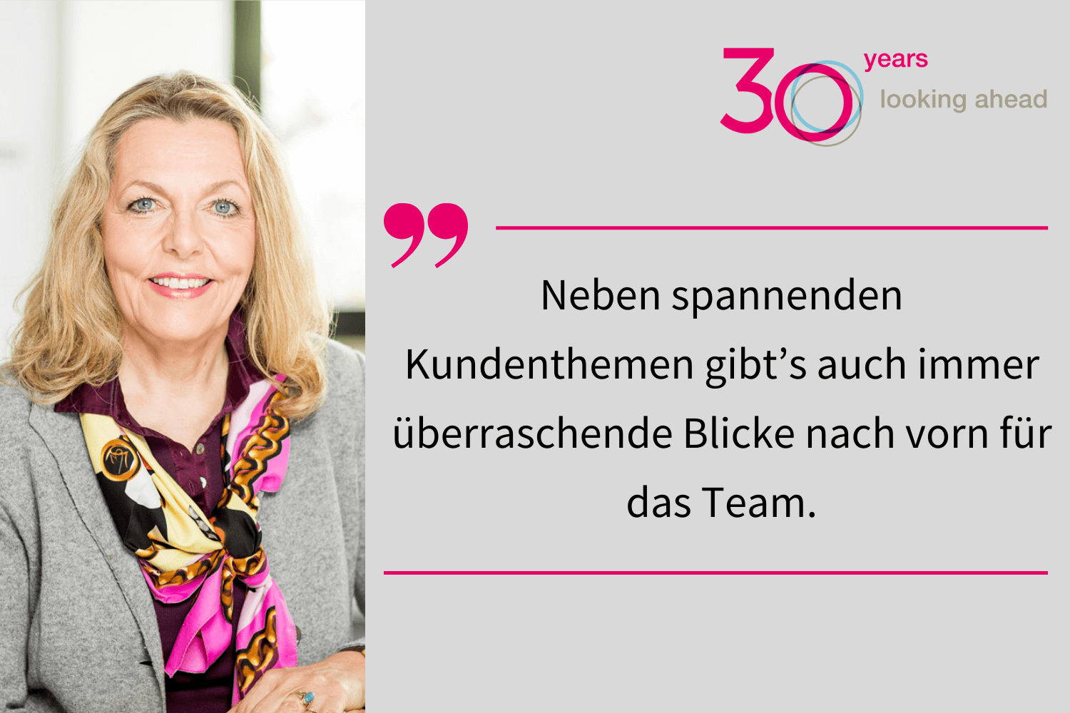 „Die Zukunft unter uns“. So hieß mein erstes großes PR-Projekt bei Sympra zum 100-Jahr-Jubiläum eines Kunden, mit dem ich inzwischen viele weitere Zukunftsthemen auf den Weg gebracht habe. Neben spannenden Kundenthemen gibt’s auch immer überraschende Blicke nach vorn für das Team. Wie beim Kreativseminar, das nachts stattfand. Alle waren irgendwann müde, aber sehr inspiriert. Um Innovationen und digitale Zukunft drehte sich die Themenwoche „100 Stunden Morgen“ und mit „create5“ reisten wir in Metropolen, um Trends zu erspüren und Menschen aus der Medienszene zu interviewen. Viele Projekte bei Sympra machen Spaß und Lust auf Neues… schön für uns und auch für unsere Kunden… always looking ahead.