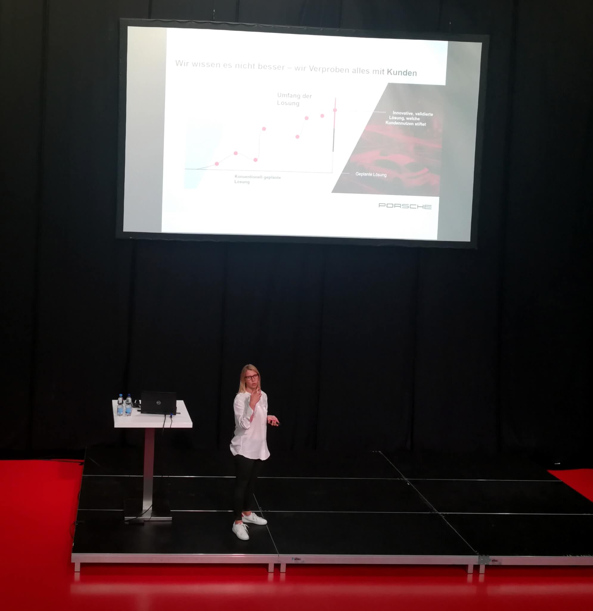 Anja Hendel, Leiterin Porsche Digital Lab, bei ihrem Vortrag „Die digitale Transformation verändert alles”