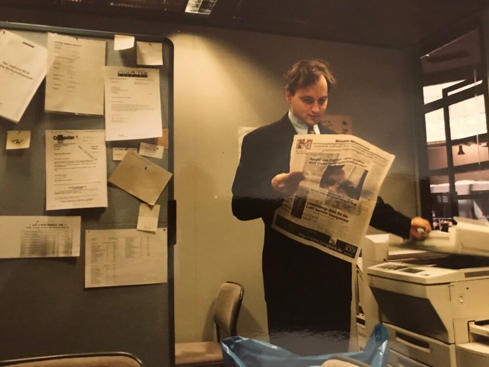 Viele CeBIT-Besuche folgten. Inzwischen mit Sympra, unterstützten wir immer wieder SEL, die inzwischen Alcatel und später Alcatel-Lucent hieß. So erstellten wir für die 500 Mitarbeiter eine tägliche Zeitung, um sie darüber zu informieren, was auf ihren Messeständen den ganzen Tag lang passierte. Wir führten tagsüber Interviews, schossen Bilder, recherchierten Themen („Wie viele Bockwürste kochen Sie jeden Tag?“), nach Messeschluss fingen wir an zu layouten. Irgendwann in der Nacht fuhren wir in unser Quartier in Pattensen, um morgens um 6 Uhr wieder auf dem Stand zu sein, um den aktuellen Pressespiegel zusammenzustellen, der Bestandteil der Zeitung werden sollte. Diese kopierten wir, hefteten sie und drückten sie pünktlich ab 8.30 Uhr dem Standpersonal in die Hand.