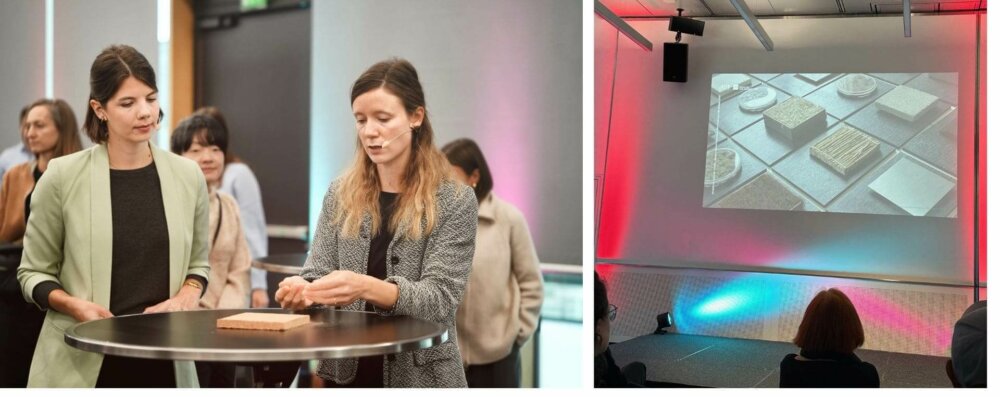 Bild 1: Markus Karl / Fotonoid: links Moderatorin Hannah Pinell, rechts Elena Boerman, wissenschaftliche Mitarbeiterin an der KIT-Professur Nachhaltiges Bauen, unter der Leitung von Prof. Dirk E. Hebel