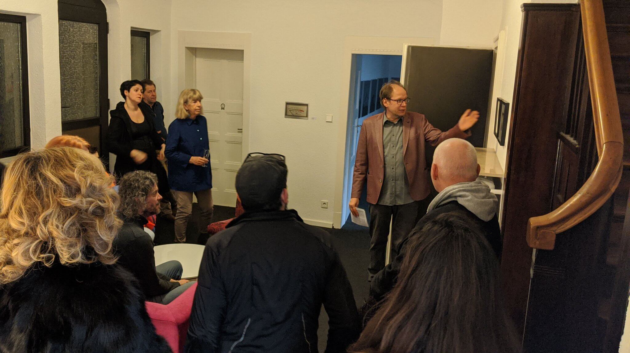 Am Freitag, 24. Januar, fand die erste von zwei Führungen des Kurators Marko Schacher durch die aktuelle Fotoausstellung „Sieg der Stille“ bei Sympra statt. „Jeder, der in diese Agentur kommt, möchte ein gutes PR-Konzept haben und ist nicht wegen der Kunst da“, sagte Marko Schacher in seiner Begrüßungsrede. Naja, nicht ganz. Denn an diesem Abend haben sich knapp 20 kunstbegeisterte Gäste bei Sympra eingefunden, um sich von Schacher und drei der sieben ausstellenden Künstler (Josh von Staudach, Susanne Wegner und Marcus Gwiasda) durch die Villa führen zu lassen.